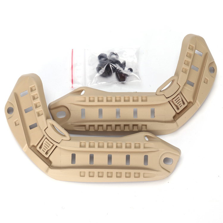 Caractéristique | Construction en polymère haute densité.Les connecteurs de rail d'accessoires à 4 positions fournissent des points de fixation sans accroc pour fixer ou libérer rapidement une variété d'accessoires, notamment : lampes de poche, appareil photo, visière, casque COM, stroboscope, mandibule, batterie... etc.Convient à tous les casques marins ACH, MICH, PASGT et légers. Convient aux activités de jeux de guerre en plein air. |
